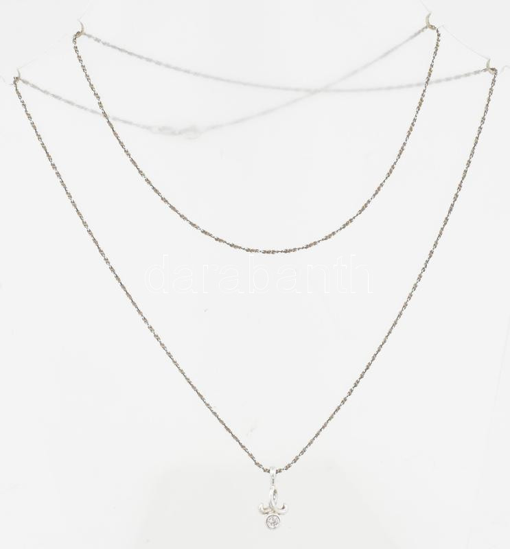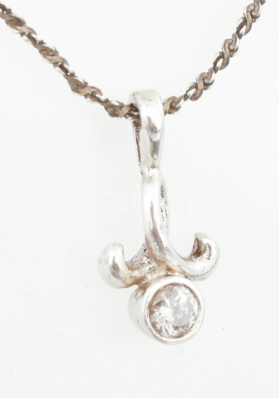Ezüst(Ag) csavart nyaklánc köves függővel, jelzett, h: 66 cm, 1,6×0,8 ...