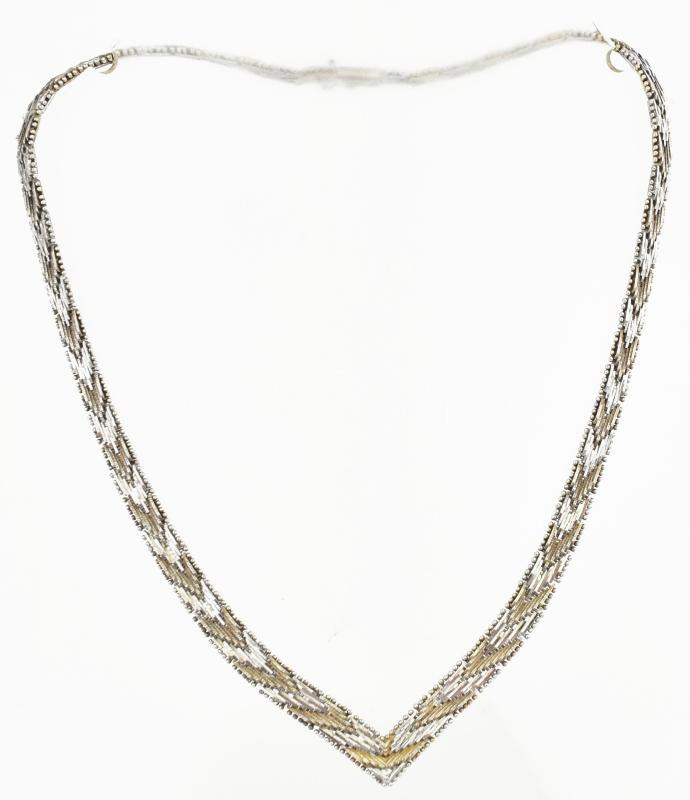 Ezüst(Ag) szövött nyakék, jelzett, biztonsági kapoccsal, h: 39 cm, net...