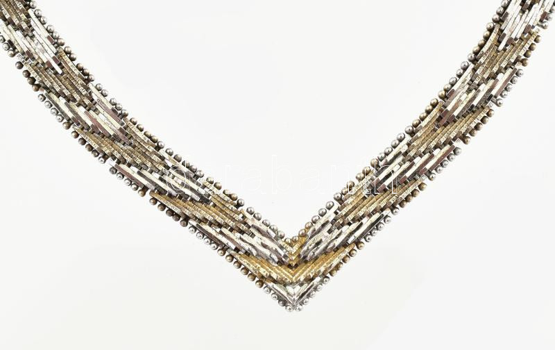 Ezüst(Ag) szövött nyakék, jelzett, biztonsági kapoccsal, h: 39 cm, nettó: 26,9 g