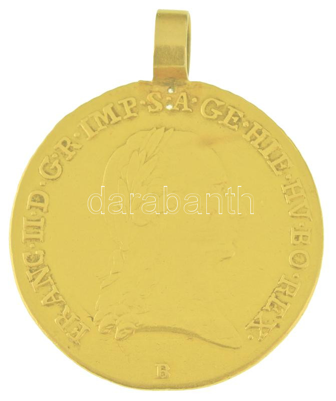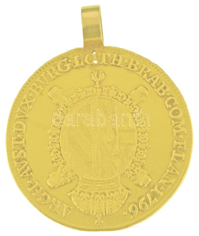 Osztrák Németalföld 1796B 1S Au "Ferenc" Körmöcbánya, füllel, lyukasztva (br:11,29g/0.919/28mm) T:XF,VF karc, lyuk Austrian Netherlands 1796B 1 Souverain Au "Franz II" Kremnitz, with ear and two tiny hole (br:11,29g/0.919/28mm) C:XF,VF scratch, holed Krause KM#64
