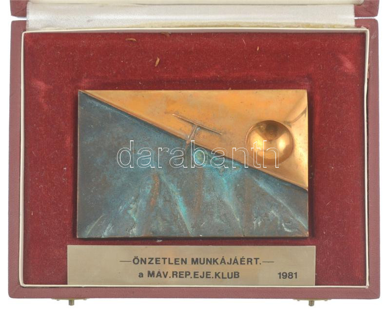 https://www.darabanth.com/en/447-Online-auction/447.0/Numismatics/Hungarian-commemorative-medals-and-plaques~500010/1981-Egyoldalas-ontott-bronz-repulo-sport-plakett-disztokban-benne-Onzetlen-munkajaert-~II2950230