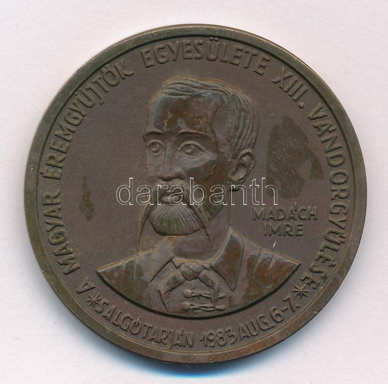 1983. "A Magyar Éremgyűjtők Egyesülete XIII. Vándorgyűlése - Salgótarj... https://www.darabanth.com/en/447-Online-auction/447.0/Numismatics/Hungarian-commemorative-medals-and-plaques~500010/1983-A-Magyar-Eremgyujtok-Egyesulete-XIII-Vandorgyulese-Salgotarjan-Madach-Imre-A~II2960751