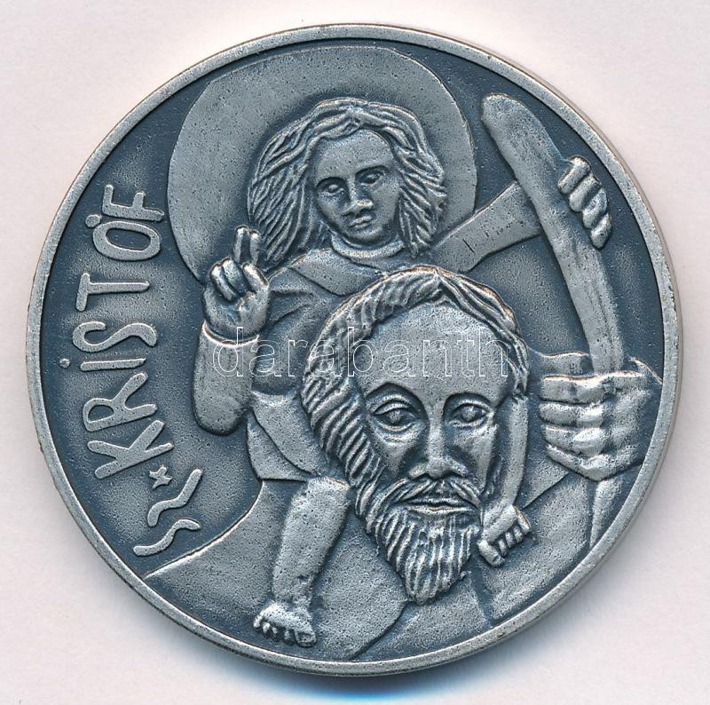 ~2000. "Szent Kristóf / Társadalombiztosításért" ezüstpatinázott fém e...