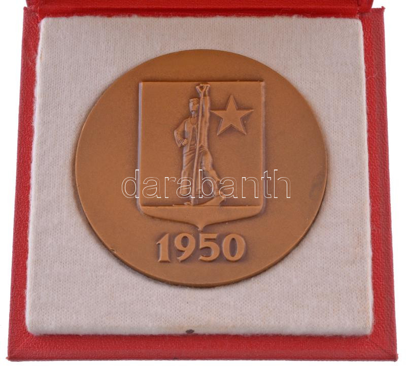 DN "Dunaújváros / 1950" bronz emlékérem eredeti tokban (70mm) T:AU