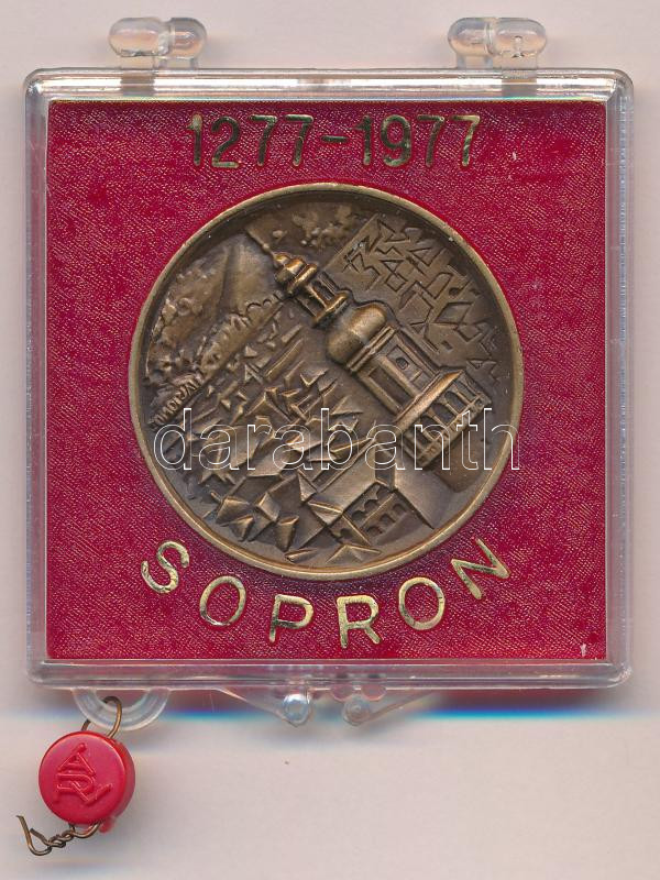 Description: Somorjai László (1949-) 1977. "Sopron" bronz emlékérem Sopron szabad királyi várossá tételének 700. évfordulójára, eredeti, plombált ÁPV plasztiktokban (32mm) T:UNC