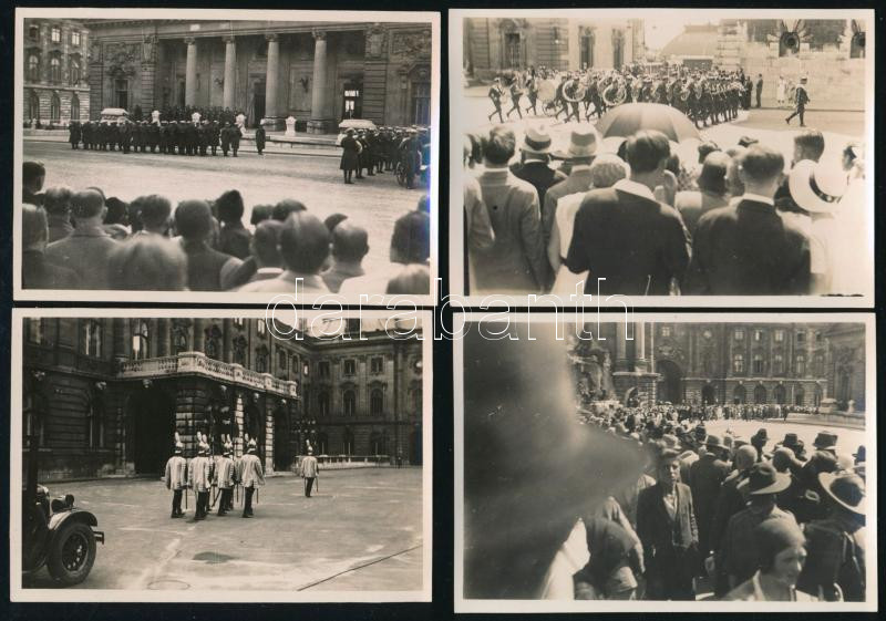 1931 Budapest, őrségváltás a Budai Várban, 4 db fotó, 6×9 cm