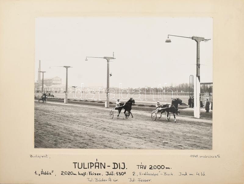 1941 Bp., Tulipán-díj, fogathajtó verseny, kartonra kasírozott fotó, S...