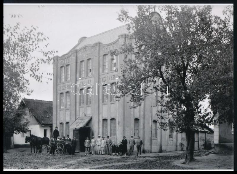 Description: cca 1936 Lőcsei Árpád (?-?) kecskeméti vándorfényképész hagyatékából 1 db modern nagyítás (Mészáros és Tallér testvérek malma), jelzés nélkül, 15x21 cm