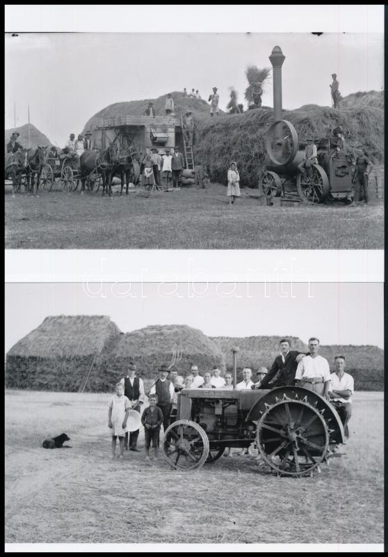 Description: cca 1938 Körmös traktor, gőzgép kint a határban, valahol Bács-Kiskunban, Lőcsei Árpád (?-?) kecskeméti vándorfényképész hagyatékából 2 db modern nagyítás, 15x21 cm