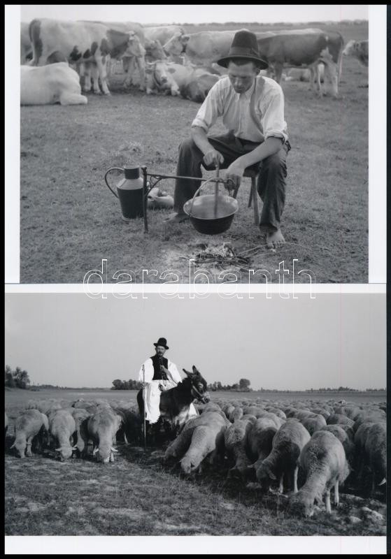 cca 1960 Medgyesi László (?-?) kecskeméti fotóművész hagyatékából 2 db modern nagyítás (Pásztorélet a bugaci pusztán), jelzés nélkül, 15x21 cm