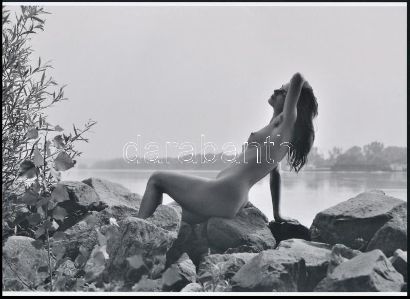 cca 1985 Vízparti látomás, szolidan erotikus felvétel, 1 db modern nag...