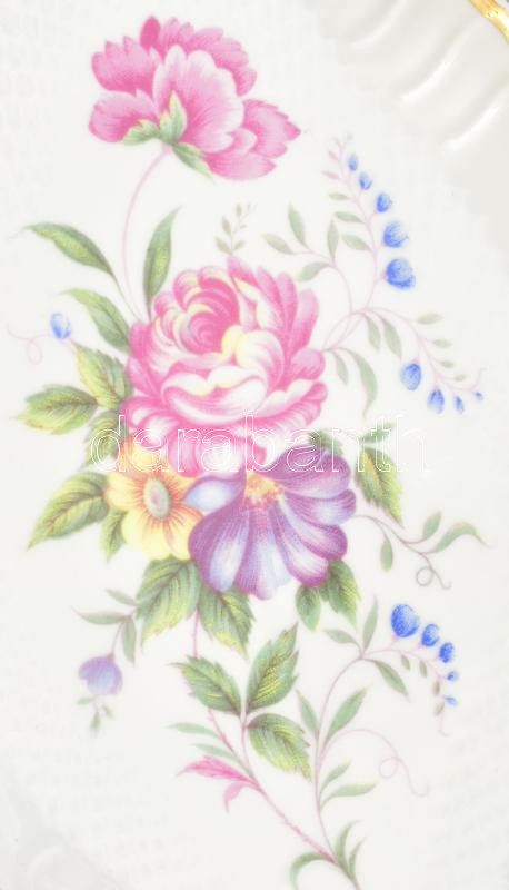 3 részes Hollóházi Erika mintás porcelán asztali készlet. Kézzel feste...