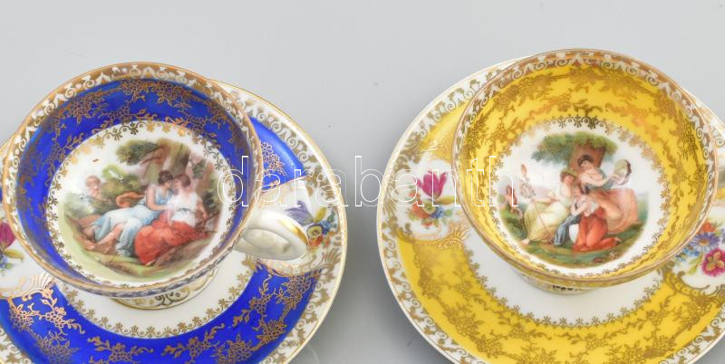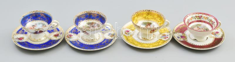 4 db cseh Alt Wien mokkás csésze antik jelenettel. Matricás, jelzett, ...