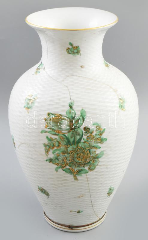 Herendi aranyozott virág mintás padlóváza. Kézzel festett, jelzett, ragasztott, drótozott 33 cm