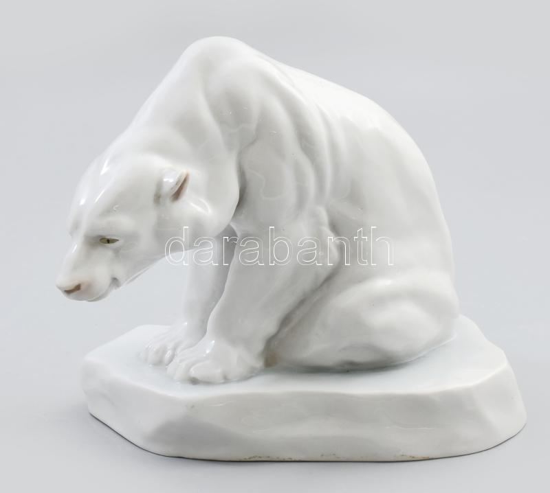 Herendi nagy méretű jegesmedve szobor. Jelzett (Markup Béla 1927), Kéz...