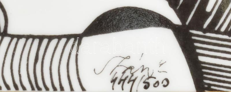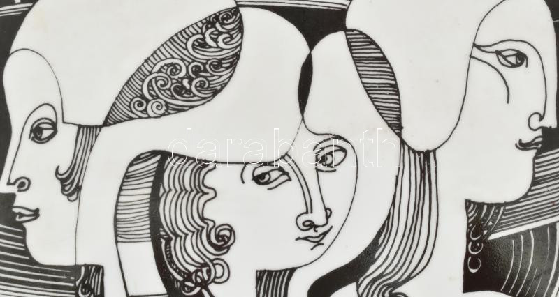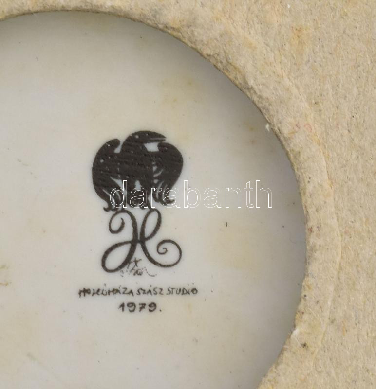 Hollóházi Szász Endre által tervezett mintával díszített porcelán plak...