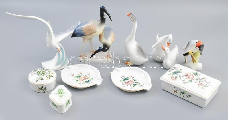 Hollóházi figura és asztali dísz tétel 10 db vegyesen, jó állapotban