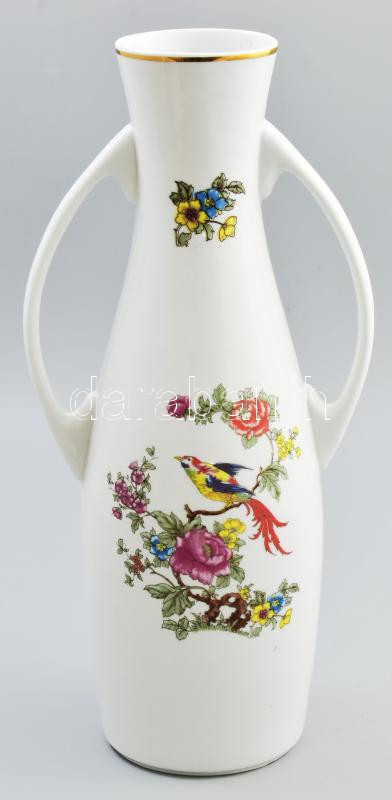 Hollóházi paradicsommadár mintás porcelán füles váza. Matricás, jelzett, apró kopásnyomokkal, m: 36 cm