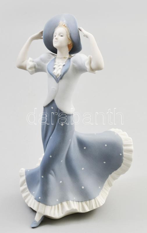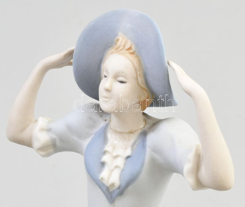 Royal Dux kalapos hölgy, biszkvit porcelán, feje ragasztott, jelzéssel...