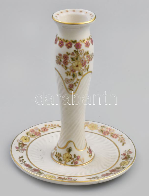 Zsolnay virágmintás porcelán gyertyatartó. Kézzel festett, jelzett, hi...
