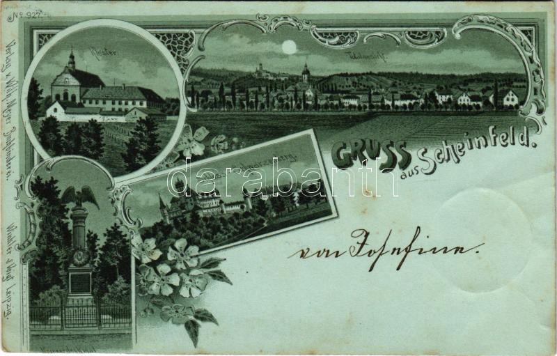 1898 (Vorläufer) Scheinfeld, Kloster, Kriegerdenkmal, Schloss Schwarzenberg. Art Nouveau, floral, litho (r)