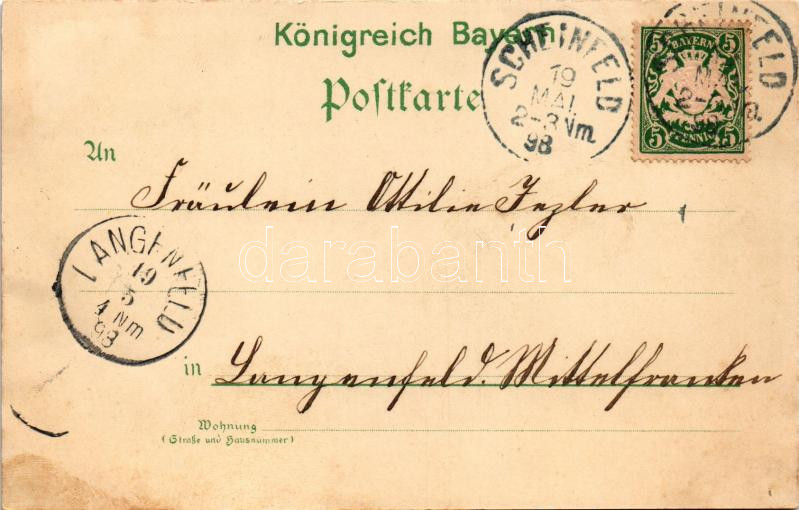 1898 (Vorläufer) Scheinfeld, Vorstadt, Marktplatz m. Kriegerdenkmal, Schloss Schwarzenberg. Art Nouveau, floral, litho (r)