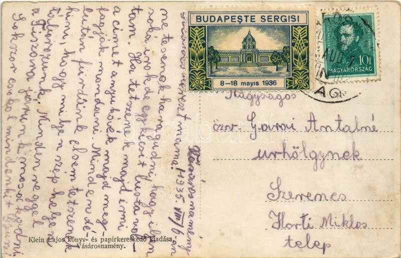 https://www.darabanth.com/en/447-Online-auction/447.0/Postcards/Hungary~2000005/1935-Vasarosnameny-vasutallomas-Klein-Lajos-kiadasa-plus-BUDAPESTE-SERGISI-1936-torok-nyel~II2963490