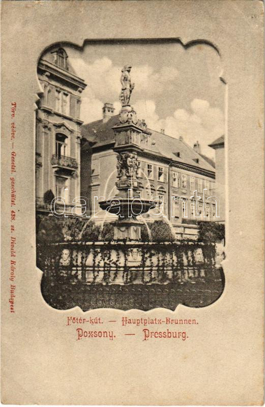 Pozsony, Pressburg, Bratislava; Főtéri kút. Divald Károly 438. sz. / H...