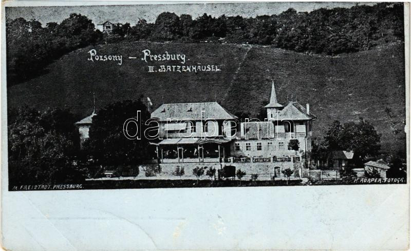 Pozsony, Pressburg, Bratislava; III. Bimbóház étterem, nyaraló. M. Freistadt kiadása / III. Batzenhäusel / restaurant, villa (EK)
