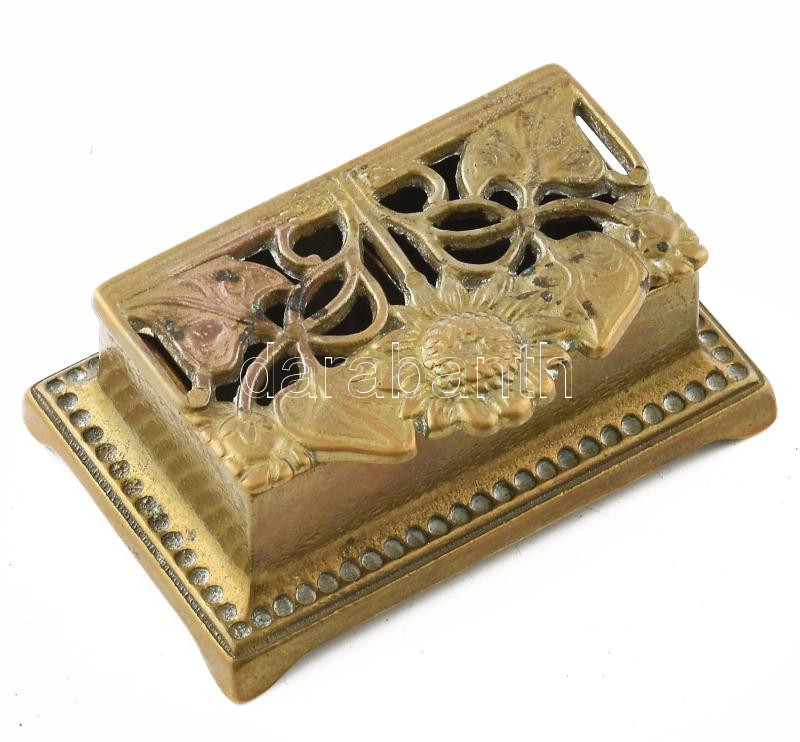 Antik bélyegzőpárna tartó, bronz, 8,5x5,5x3,5 cm