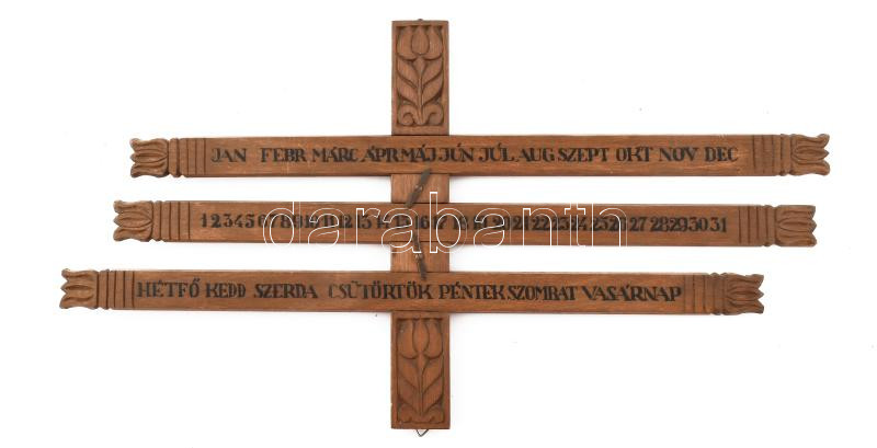 Antik fa csúsztatható öröknaptár, faragott, 21x36 cm