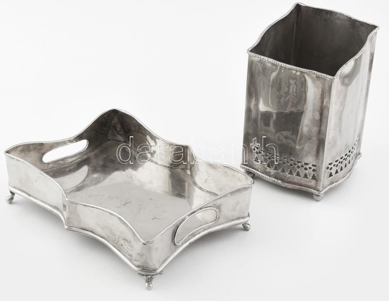 Sheffield angol italtartó és süteménykínáló, jelzéssel, kopással, 24x17 cm, 11x12x19 cm