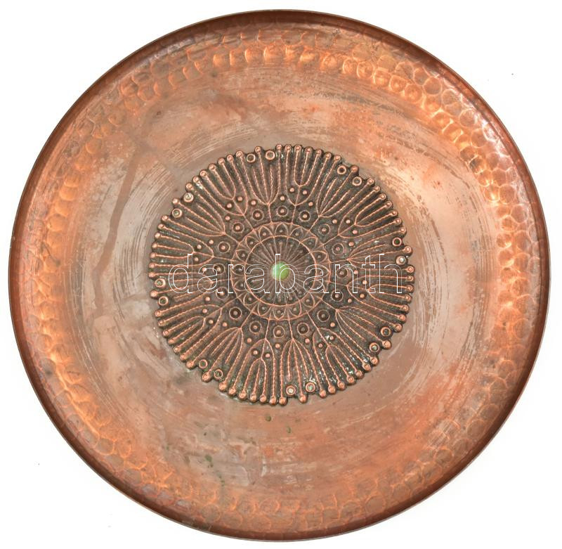 Retro iparművészeti bronz falitál, kis kopással, d: 23,5 cm