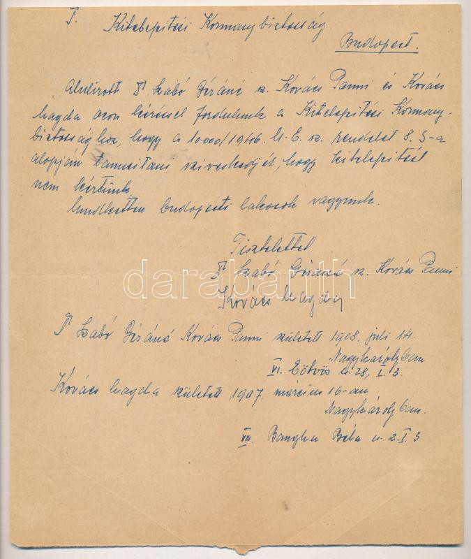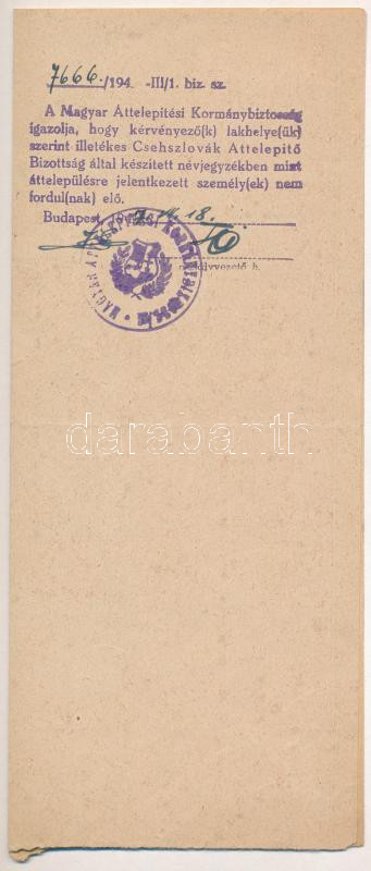https://www.darabanth.com/en/448-Online-auction/448.0/Art-and-other-collectibles/Documents~1000031/1947-Bp-a-Magyar-Attelepitesi-Kormanybiztossagnak-irt-kerveny-hatoldalan-az-Attelepit~II2972453