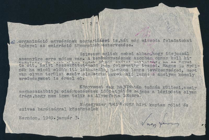 1949 Nagy Ferenc (1903-1979) miniszterelnök levéltöredéke aláírásával ...
