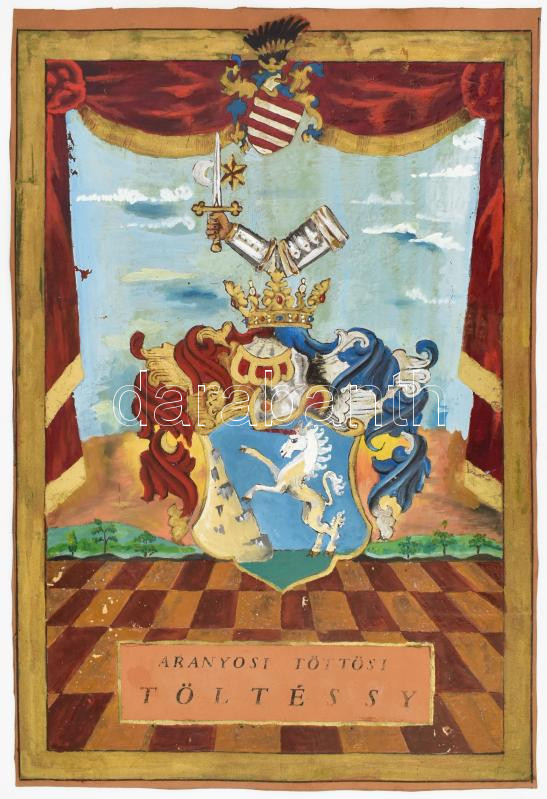 cca 2000 Aranyosi Töttösi Töltéssy nemesi család címere. Olaj, szarvasbőr, jelzés nélkül. Apró felületi sérülésekkel. 41,5x28 cm