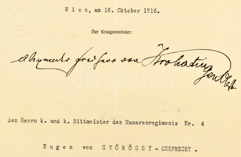 https://www.darabanth.com/en/448-Online-auction/448.0/Art-and-other-collectibles/Military~2000002/1916-Becs-miniszteri-kituntetesadomanyozo-irat-magyar-huszar-reszere~II2975010