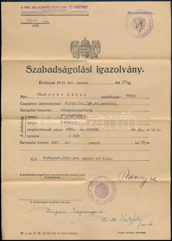 1945 Szőke Péter hdgy., a 201. honi légvédelmi tüzérosztály ütegparanc... https://www.darabanth.com/en/448-Online-auction/448.0/Art-and-other-collectibles/Military~2000002/1945-Szoke-Peter-hdgy-a-201-honi-legvedelmi-tuzerosztaly-utegparancsnokanak-kitoltott-~II2976564
