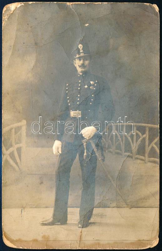 cca 1920-1930 Rendőr portréja, fotólap sérülésekkel, 14×9 cm