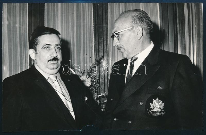 Description: 1970 L. Wittenberg és Székely Imre (Bauer Sándor felvétele), Bauer Sándor, sajtófotó, a hátoldalon feliratozott, pecséttel jelzett, alján sérült, 18x11,5 cm