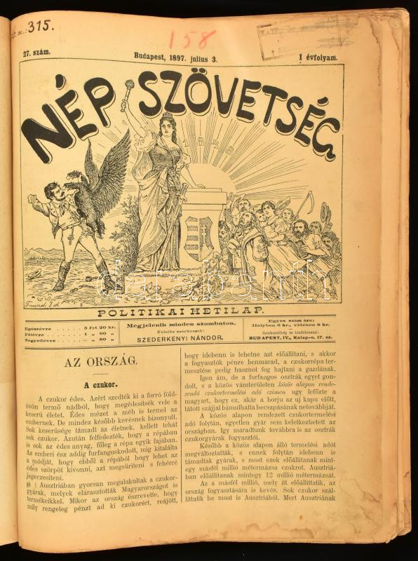 1896-1897 Népszövetség politikai hetilap I. évf. 1 (mutatvánszám) + 1-... https://www.darabanth.com/en/448-Online-auction/448.0/Art-and-other-collectibles/Printed-Materials~2000005/1896-1897-Nepszovetseg-politikai-hetilap-I-evf-1-mutatvanszam-plus-1-52-sz-1896-dec-20-~II2972449