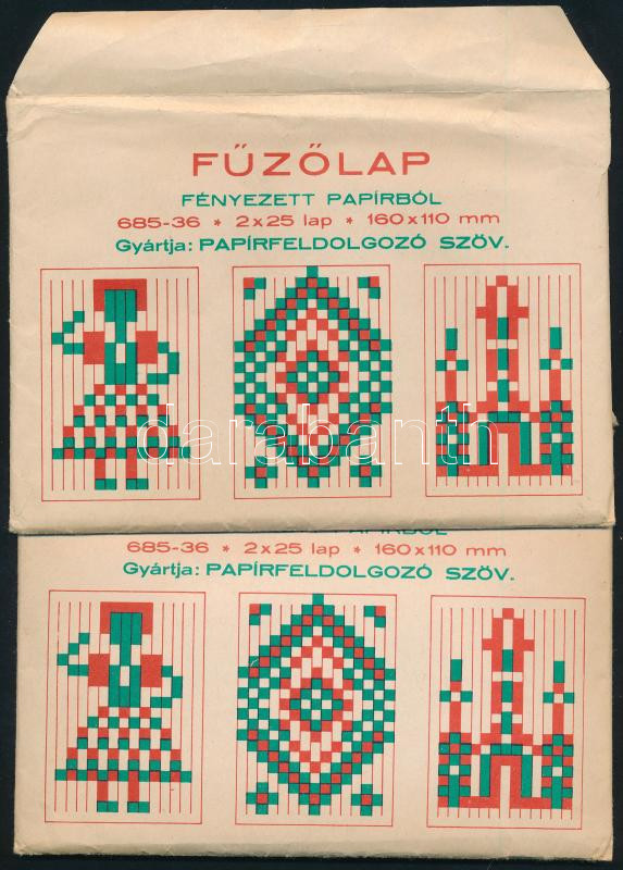 cca 1960-1980 Fűzőlap fényezett papírból, gyártja: Papírfeldolgozó Szövetkezet, 2 csomag, 16x11 cm