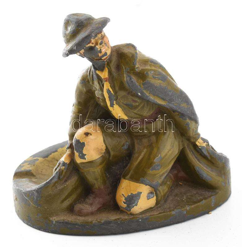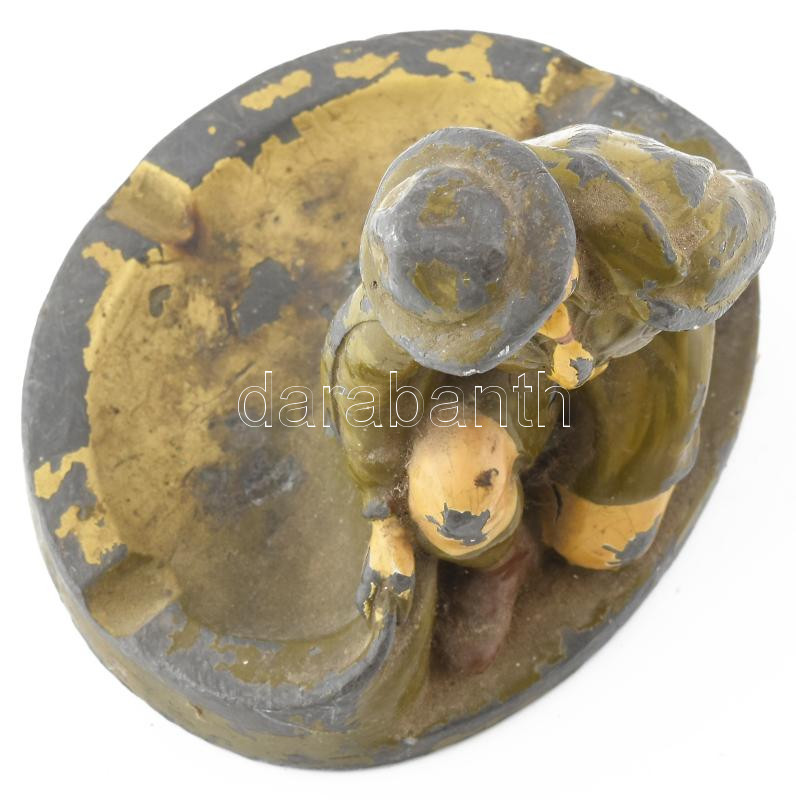 Cserkész ón figurális hamutál. Festett, kopott 12 cm