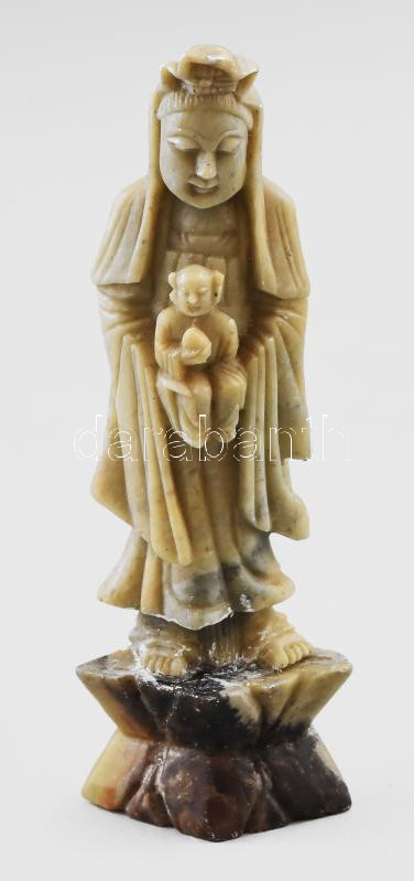 Kínai faragott buddhista szobor. Zsírkő, jelzés nélkül, kis kopással, ...