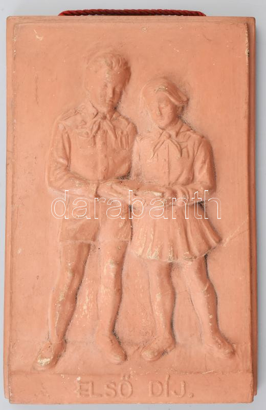 Úttörők. Terrakotta fali dísz. Első díj. XI. ker úttörőház felirattal....