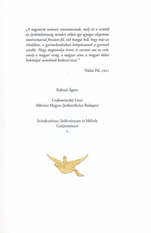 Kalmár Ágnes: Grabowieczky Leon művészi magyar játékműhelye Budapest. ... https://www.darabanth.com/en/448-Online-auction/448.0/Books/Books-Architecture-Art~2000013/Kalmar-Agnes-Grabowieczky-Leon-muveszi-magyar-jatekmuhelye-Budapest-A-Szorakatenusz-JatC3~II2951246