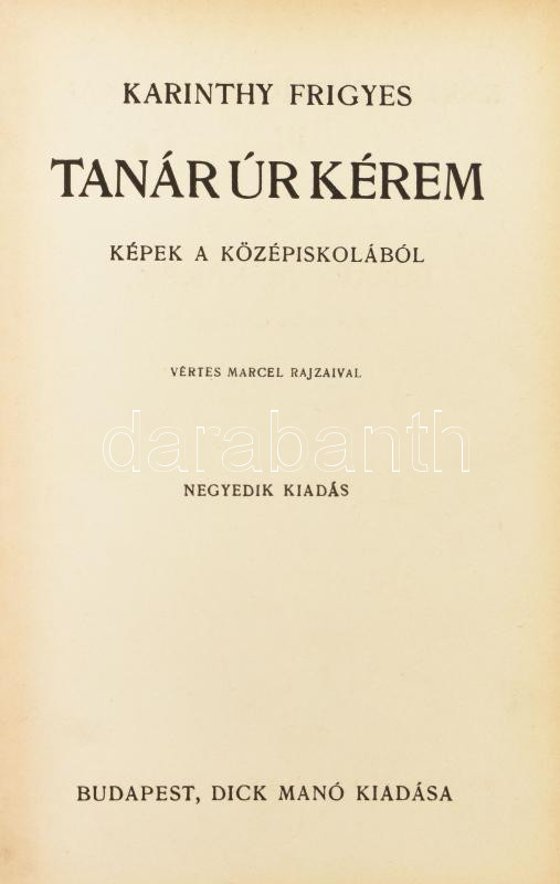 Karinthy Frigyes: Tanár úr kérem. Képek a középiskolából. Vértes Marce... https://www.darabanth.com/en/448-Online-auction/448.0/Books/Books-Other-rarities~2000024/Karinthy-Frigyes-Tanar-ur-kerem-Kepek-a-kozepiskolabol-Vertes-Marcel-rajzaival-Karinthy~II2948470