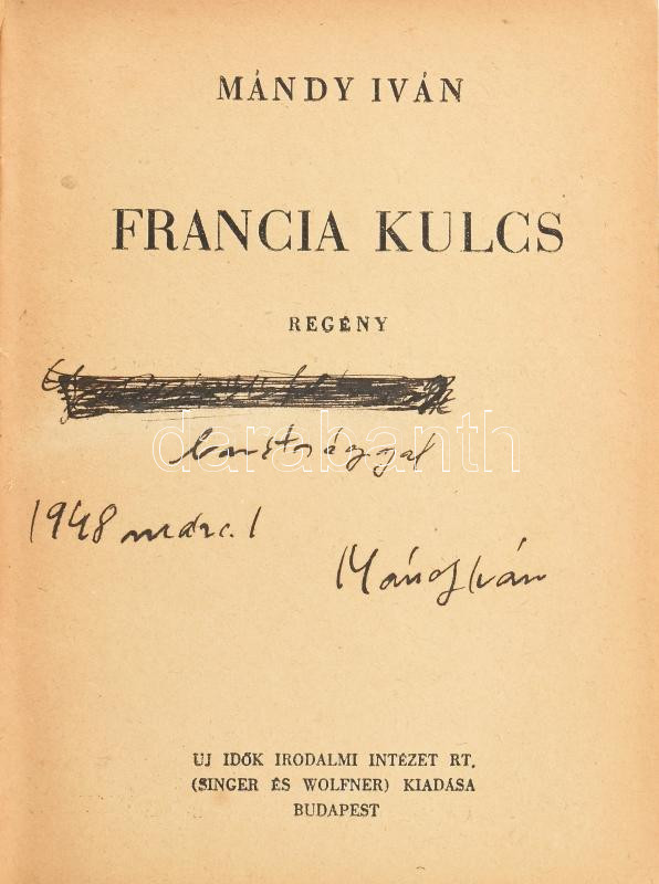 https://www.darabanth.com/en/448-Online-auction/448.0/Books/Books-Other-rarities~2000024/Mandy-Ivan-Francia-Kulcs-Bp-1948-Uj-idok-Irodalmi-Intezet-Rt-Singer-es-Wolfner-kiadasa~II2966939