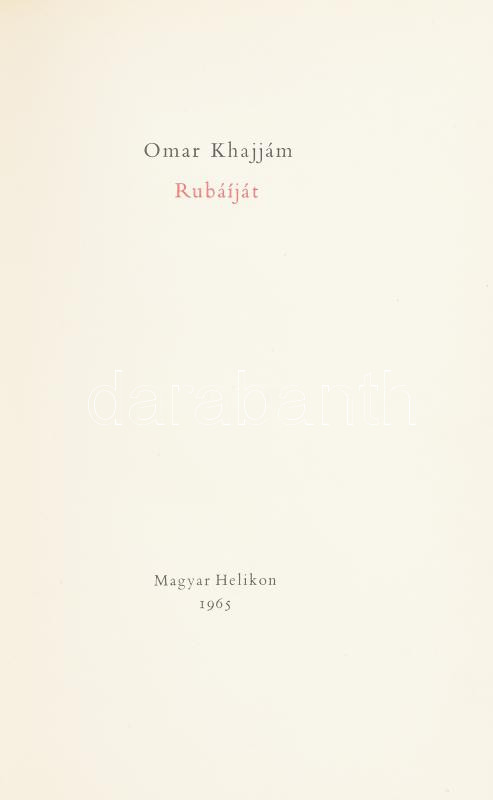 Omár Khájjám: Rubáiját. Fordította: Szabó Lőrinc. Szász Endre rézkarca... https://www.darabanth.com/en/448-Online-auction/448.0/Books/Books-Other-rarities~2000024/Omar-Khajjam-Rubaijat-Forditotta-Szabo-Lorinc-Szasz-Endre-rezkarcaival-illusztralt-A~II2967205