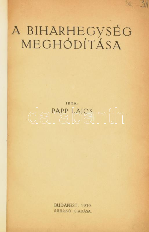 Papp Lajos: A Bihar-hegység meghódítása. Bp., 1939, szerzői magánkiadá... https://www.darabanth.com/en/448-Online-auction/448.0/Books/Books-Travelling-Local-History~2000007/Papp-Lajos-A-Bihar-hegyseg-meghoditasa-Bp-1939-szerzoi-magankiadas-Elet-ny-140plus24~II2977350